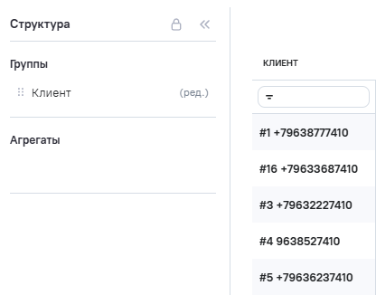 3.В Расчетные агрегаты добавлен новый агрегат Clients_phone (телефон клиента), в Промежутоное значение указана формула RIGHT ([clients], 12).