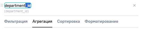 - блок Агрегация - содержит перечень настроенных агрегаций для итоговых и промежуточных значений по полям модели, включенным в виджет. У каждого поля, на котором настроена агрегация, справа отображается тег с информацией о настроенном типе агрегации по данному полю. При нажатии на тег открывается окно с настройкой агрегации.