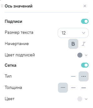 Позволяет задать настройки осей на диаграммах.