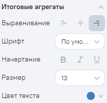 Позволяет задать параметры отображения итоговых значений агрегации.
