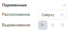 Позволяет настроить расположение и выравнивание редактируемых переменных в виджете. Блок Переменные доступен после добавления хотя бы одной переменной в виджет.