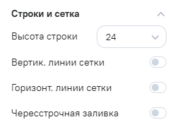 Высота строки - выпадающий список со значениями высоты строк. По умолчанию значение 40; -