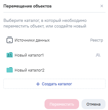 Выберите реестр или каталог, в который необходимо переместить объекты. Нажмите на кнопку