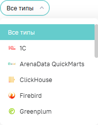 - Все типы - фильтр по типу источника данных, в реестре отобразятся объекты и каталоги с объектами с выбранным типом;