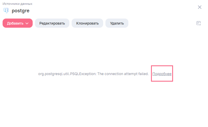 • в окне просмотра источника при наличии ошибок доступа к данным нажмите на ссылку Подробнее;