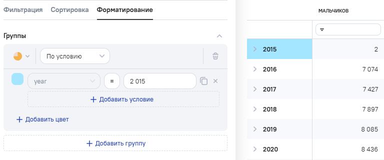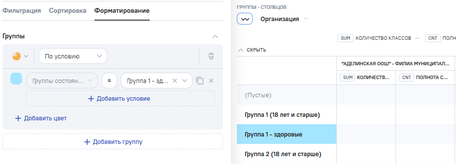 Сводная таблица поддерживаемых видов форматирования для виджетов с примерами.