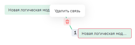 Для удаления связи, наведите курсор мыши на линию связи на схеме и нажмите кнопку Удалить связь.