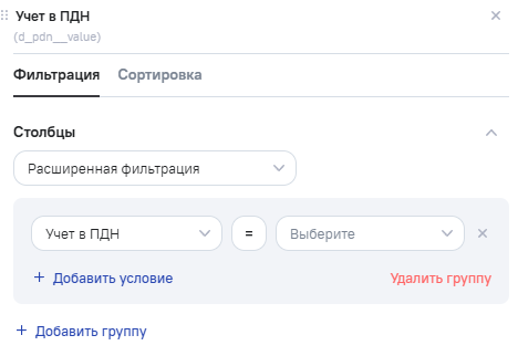 2.Блок фильтрации - доступен, если не выбрана переменная. Блок содержит следующие элементы:
