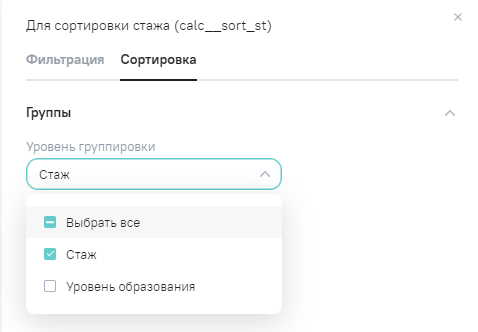 При наличии большого количества уровней группировок или длинных наименования группировок не вмещающихся в одну строку, группировки располагаются в одну строку с возможностью их перемещения с помощью кнопок-стрелок -