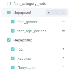 Иерархию можно переместить между другими сгруппированными полями. Поля, которые находятся в составе иерархии, не отображаются в хлебных крошках. Поля в составе иерархии можно перемещать местами только внутри самой иерархии, нажав на значок иерархии.