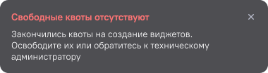 Добавление виджета может быть заблокировано, если квоты на создание виджетов закончились. Количество квот определяется лицензией с ограничениями по количеству активных объектов.