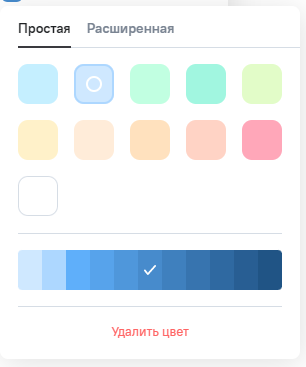 - расширенный - позволяет выбрать цвет из палитры, также есть возможность указать цвет с помощью его HEX, RGBA или HSLA кода.