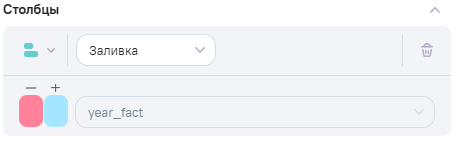 Для блока Агрегаты раскраска столбца/отрезка будет зависеть от условия, под которое попадает значение группы. Если задано несколько условий цвета, то значок показателя примет мультицвет. Для выбора доступны поля, по которым задана промежуточная агрегация.