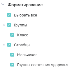 На вкладке Форматирование настраивается условное цветовое выделение первичных и агрегированных значений столбцов. На форме доступны следующие функции: