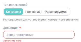 - Константа - неизменяемое значение, заданное в поле Значение. Обязательно для заполнения;
