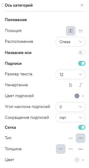 Название оси - при нажатии включает/выключает отображение наименования оси на виджете. По умолчанию выключена; -