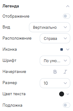 Подложка - при нажатии включает/выключает отображение подложки легенды. По умолчанию настройка выключена;