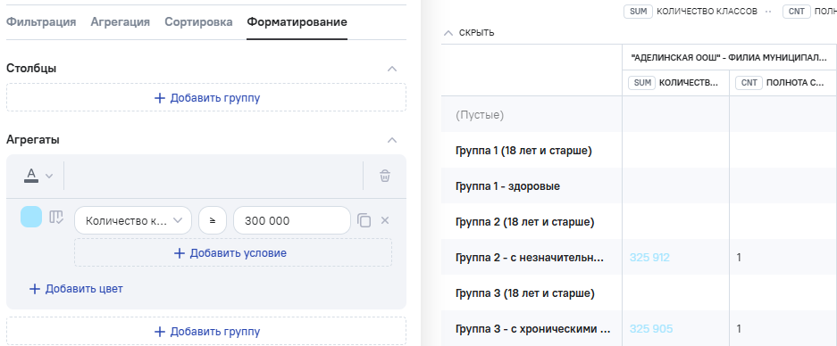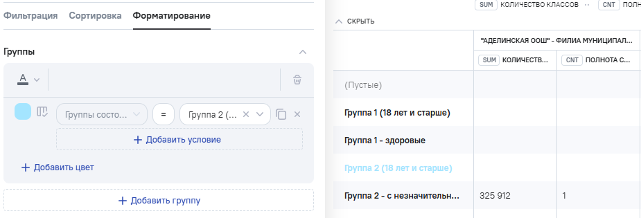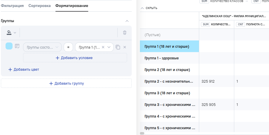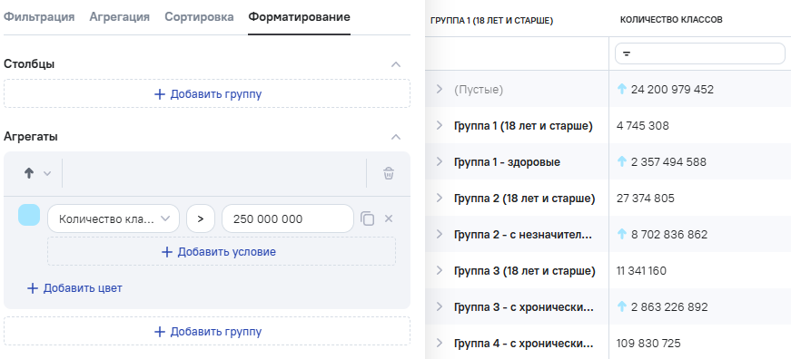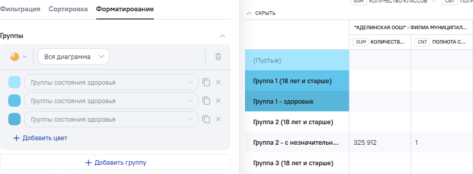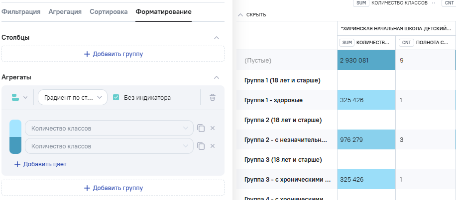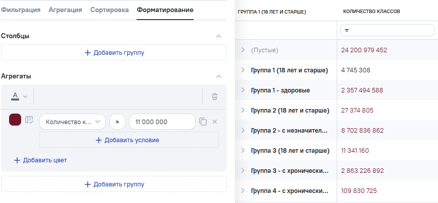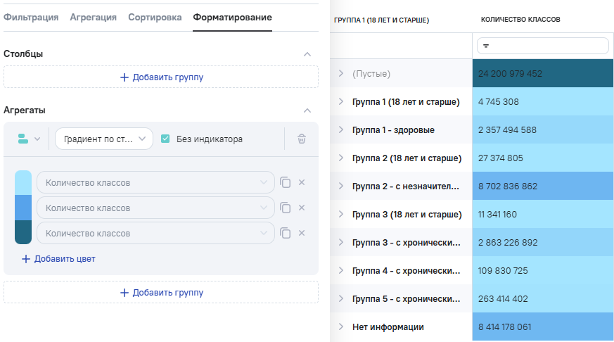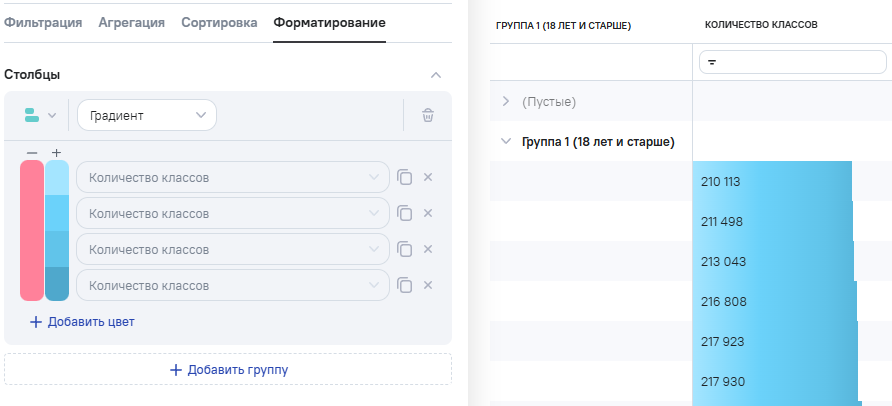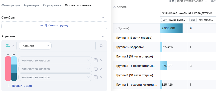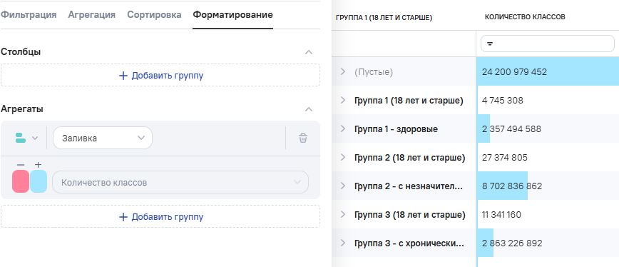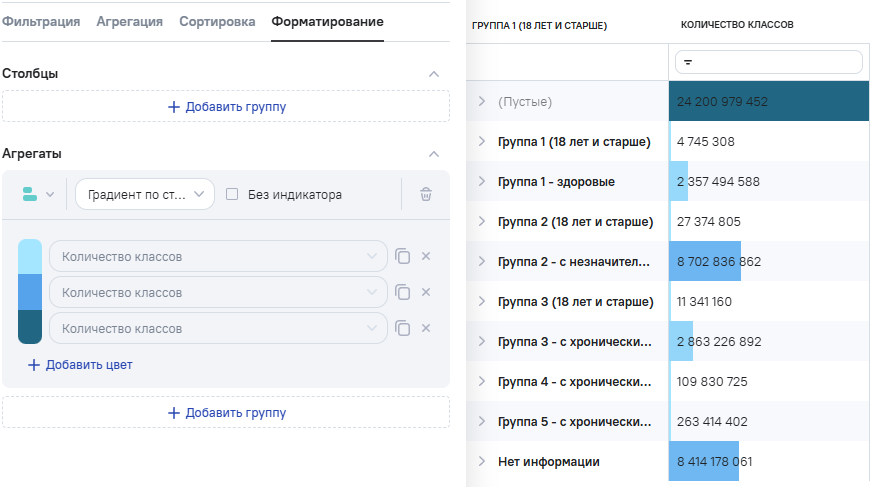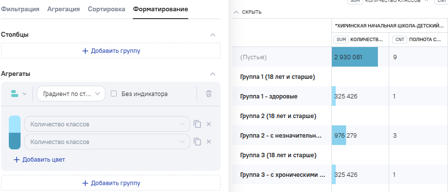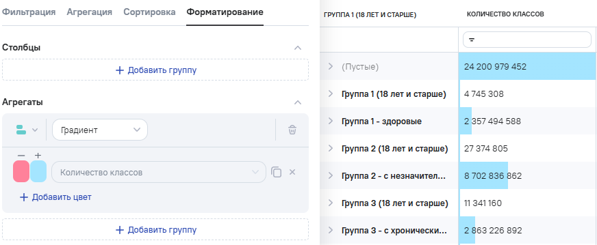 Сводная таблица поддерживаемых видов форматирования для виджетов с примерами.