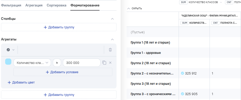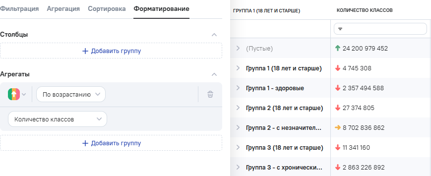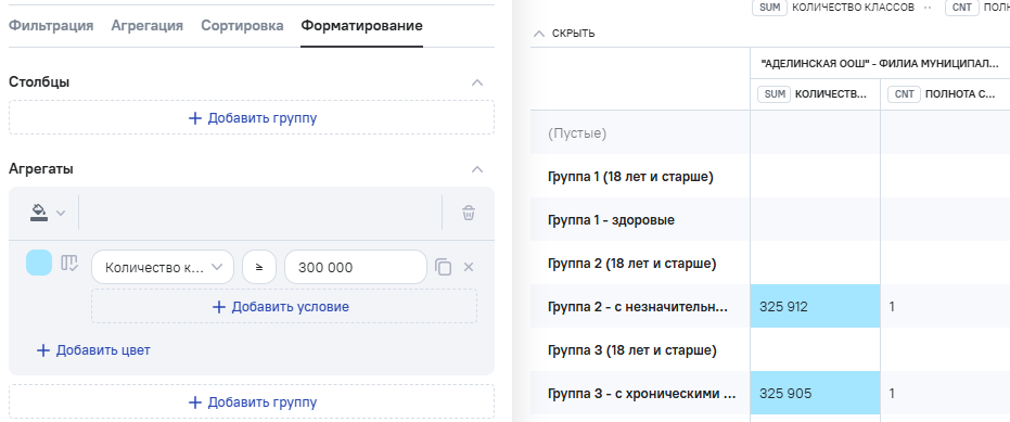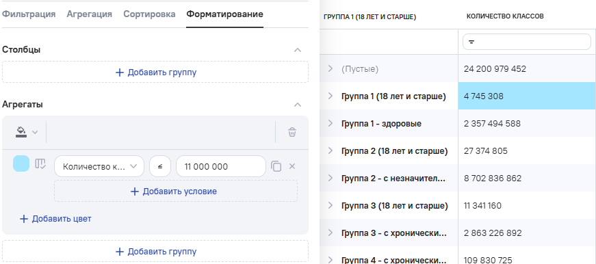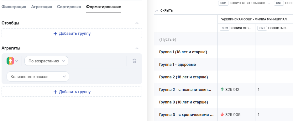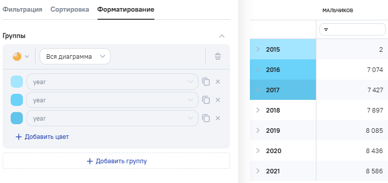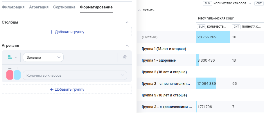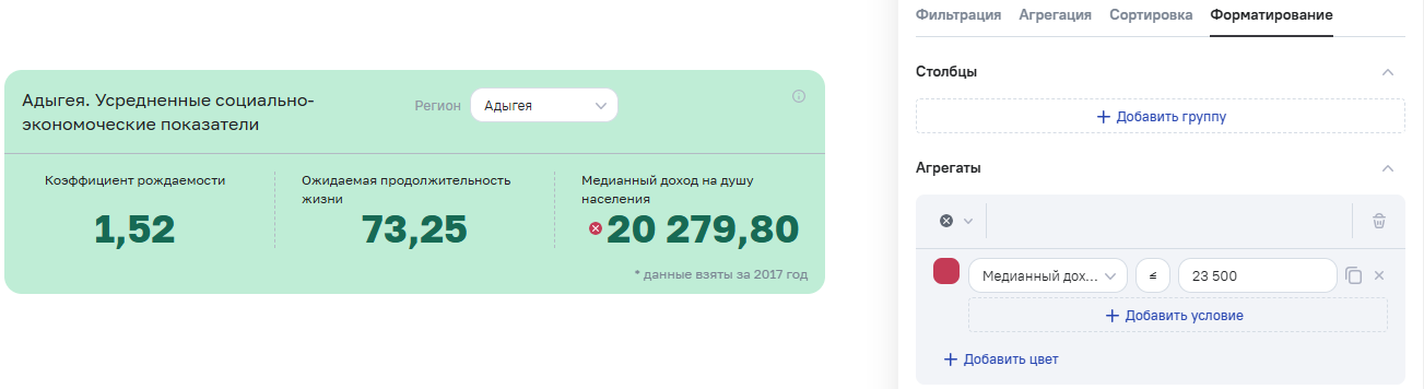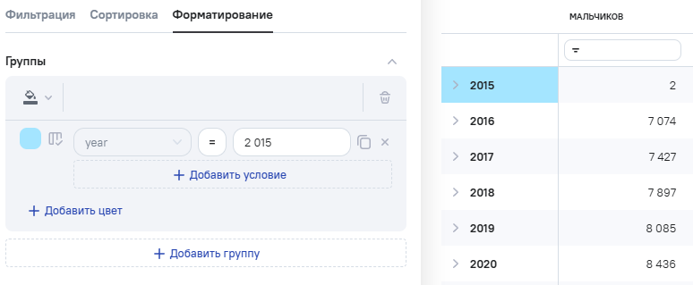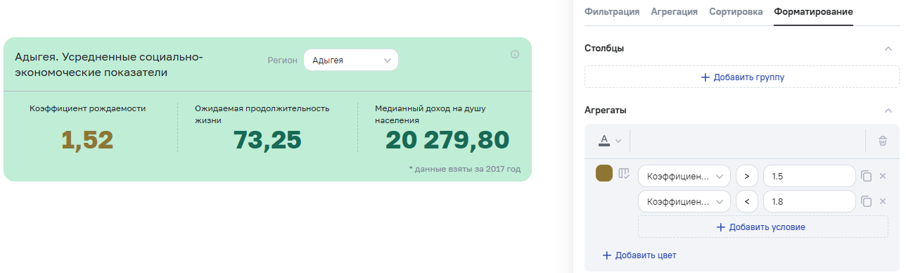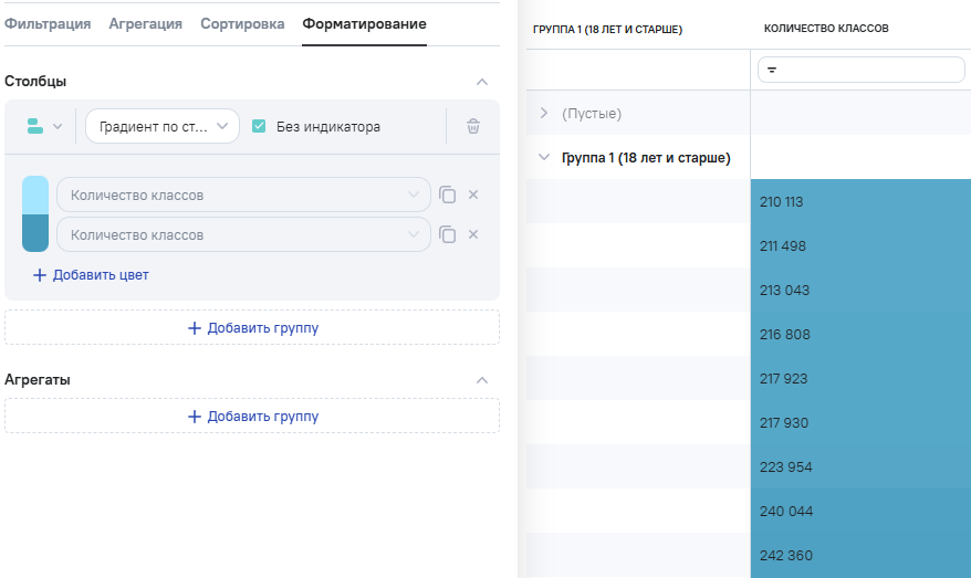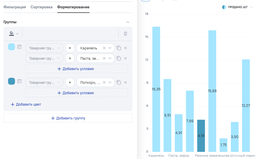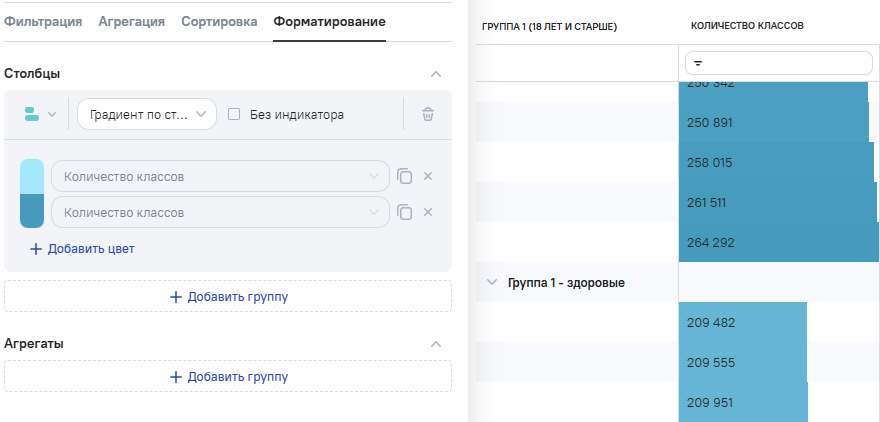Сводная таблица поддерживаемых видов форматирования для виджетов с примерами.
