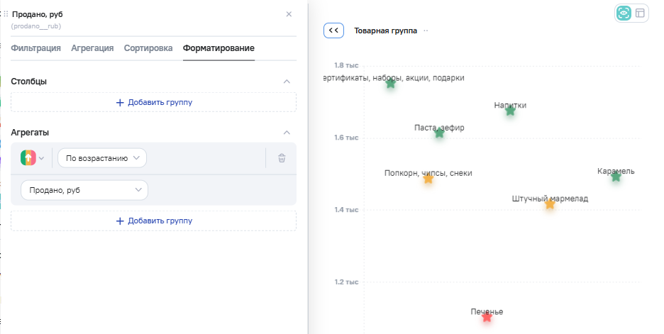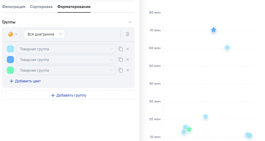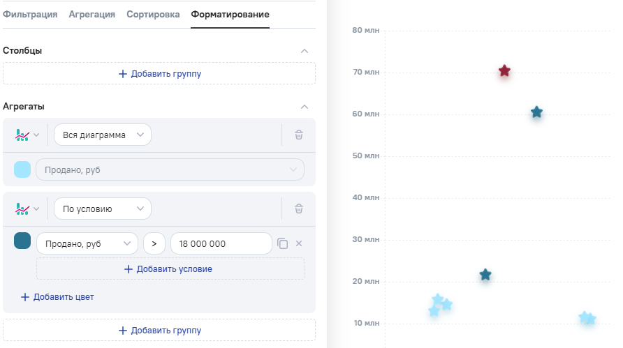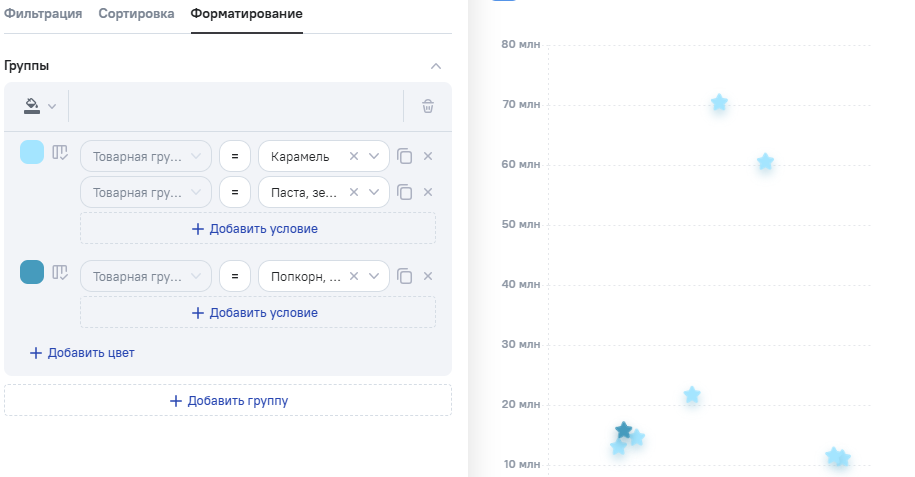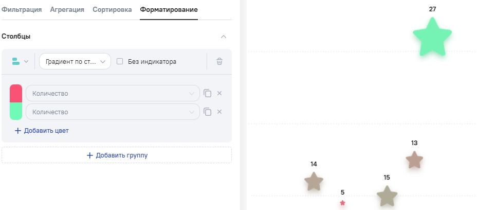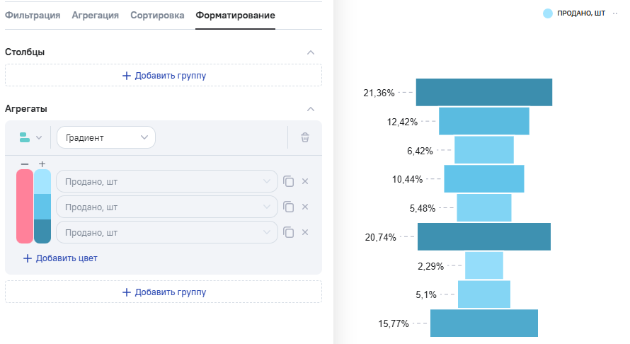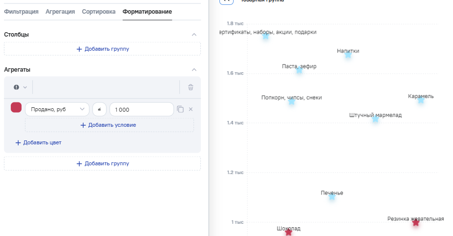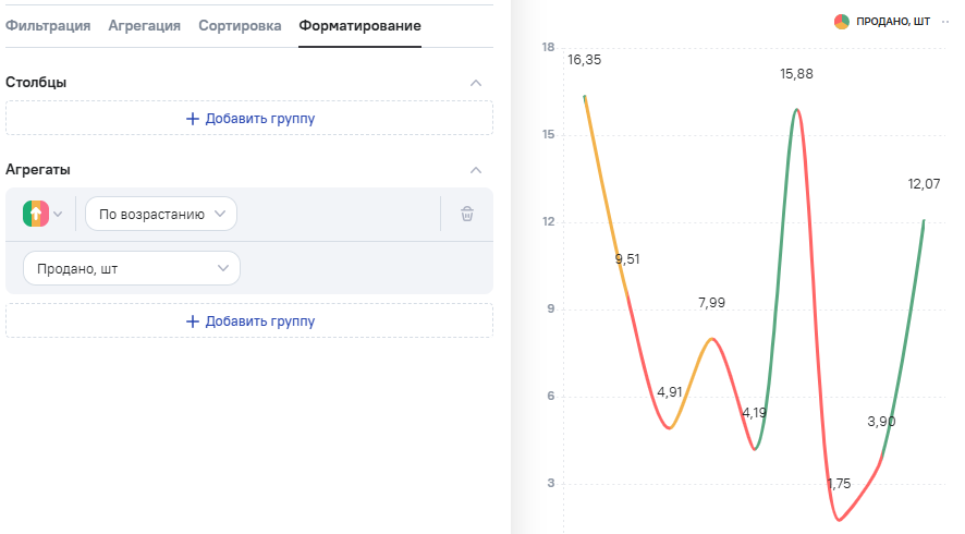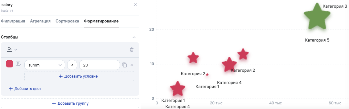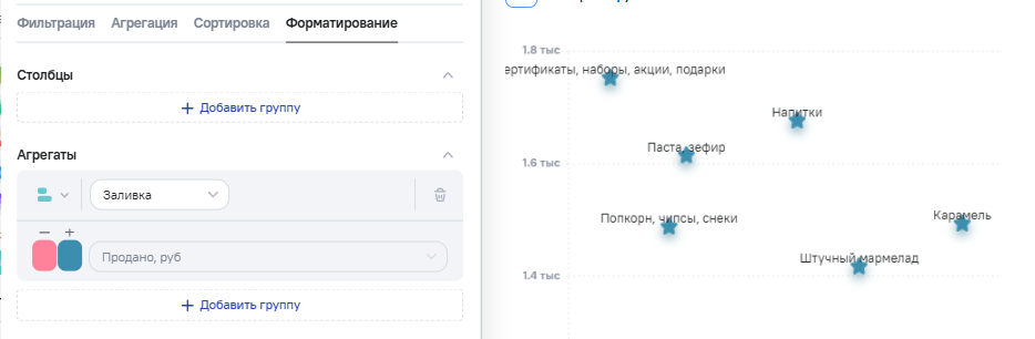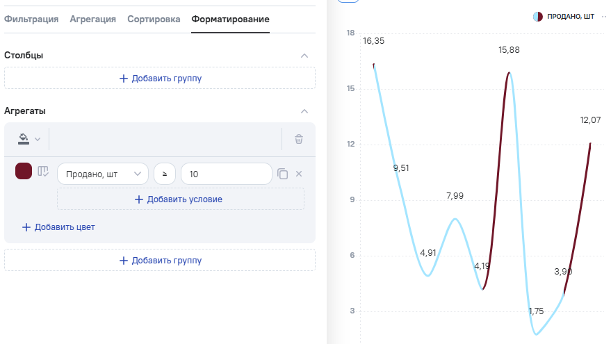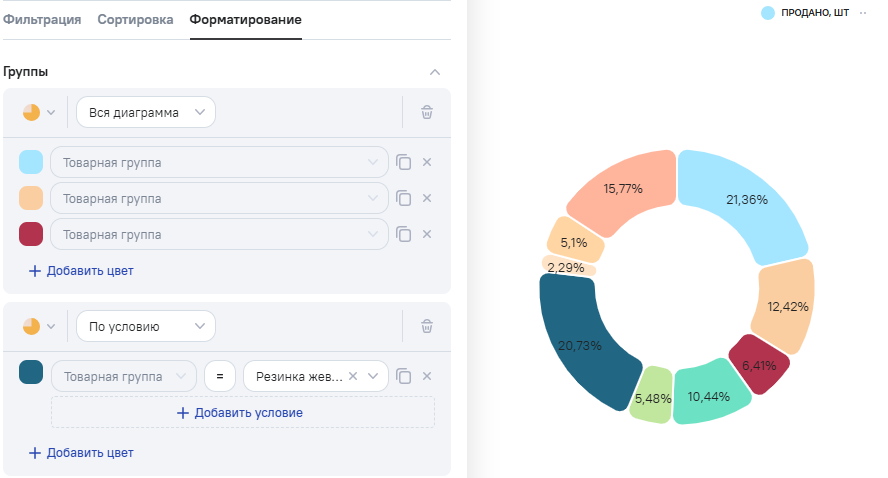 Сводная таблица поддерживаемых видов форматирования для виджетов с примерами.