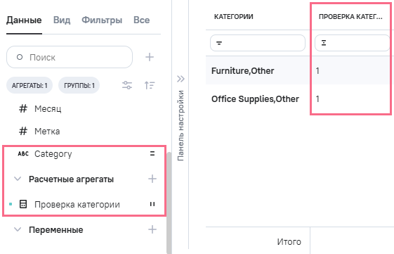 (проверка категории) определен как Агрегаты.