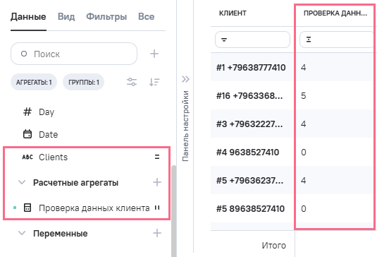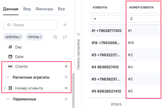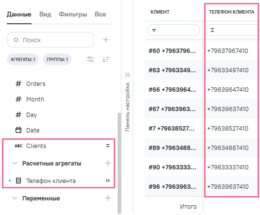 3.В Расчетные агрегаты добавлен новый агрегат Clients_phone