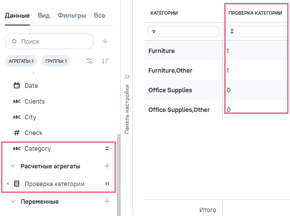 3.В Расчетные агрегаты добавлен новый агрегат Category_check