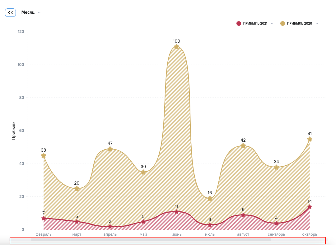 если на диаграмме отображаются несколько показателей - включение\отключение демонстрации отдельных показателей с автоматическим масштабированием по вертикальной оси остальных. При наличии большого количества показателей не вмещающихся в одну строку появляется кнопка - стрелочка по нажатии на которую можно раскрыть остальные показатели;