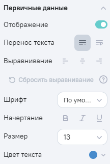 Позволяет задать параметры отображения первичных данных, выведенных в столбцы.