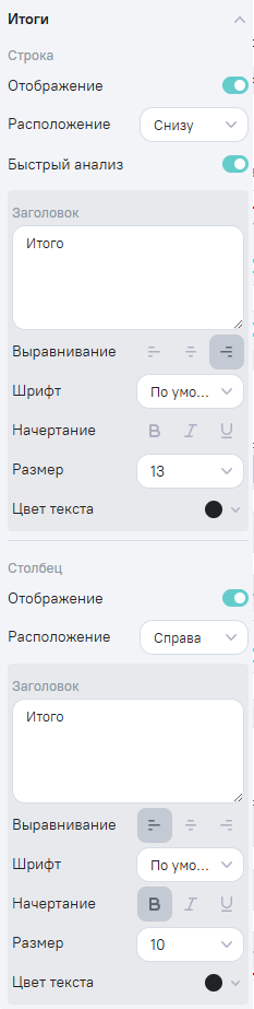 Позволяет задать параметры отображения итоговых значений агрегации.