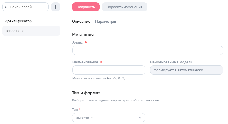 4.Нажмите на кнопку Сохранить. Чтобы сбросить настройки поля без сохранения, нажмите
