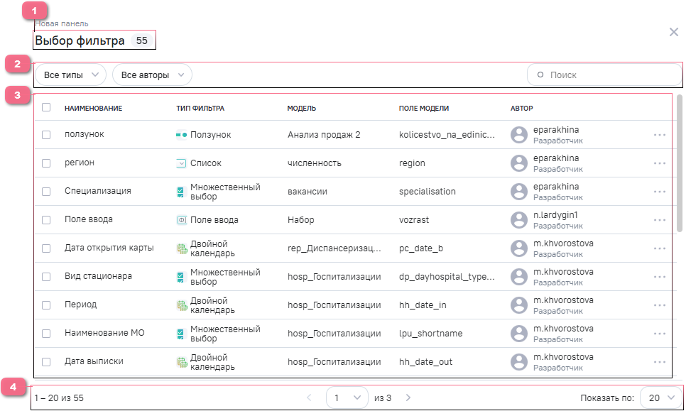 Все авторы - фильтр по автору переменной. В списке отображаются пользователи, фильтры которых отображаются в реестре;