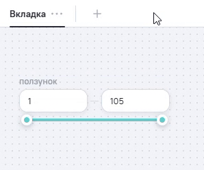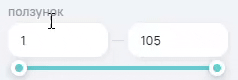 Ползунок - два числовых поля ввода с указанными значениями нижней и верхней границы поля и возможностью их изменения с помощью ползунка под ними.