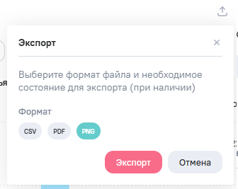 Данные виджетов экспортируются в графические форматы .pdf и .png. Для экспорта данных виджета в файл формата .pdf или .png нажмите на кнопку в режиме редактирования или просмотра виджета. Выберите формат PDF или PNG.
