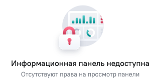 При переходе к просмотру панели, к которой у пользователя нет прав на просмотр, отобразится надпись Информационная панель недоступна. Отсутствуют права на просмотр панели..