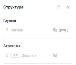 Недоступно перемещение полей между блоками структуры. Например, нельзя переместить поле из Группы в Агрегаты/Столбцы или Скрытые поля.
