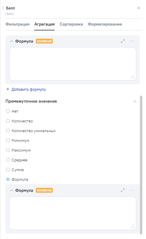 При выборе вида агрегации Формула