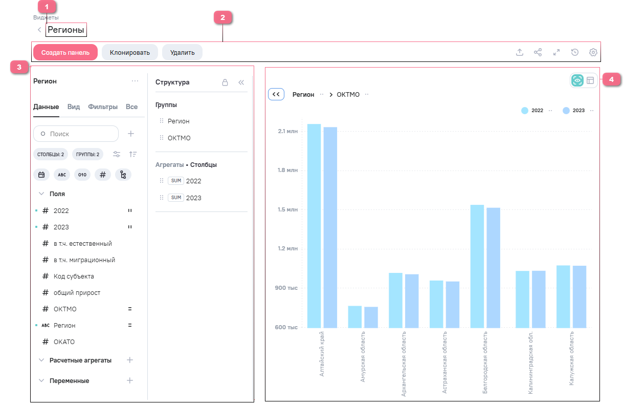 4.Область просмотра полученного виджета. В графических виджетах реализована возможность переключения в табличное представление с помощью кнопок в правом верхнем углу .