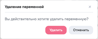 Для удаления нажмите на кнопку Удалить в окне просмотра/редактирования переменной.