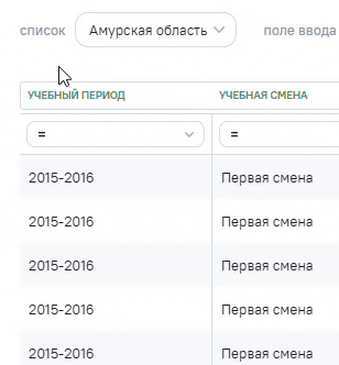2.Блок фильтрации - доступен, если не выбрана переменная. Блок содержит следующие элементы: