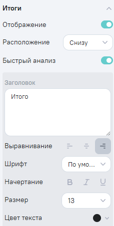 • img Быстрый анализ - при нажатии включает/выключает отображение функционала (кнопки смены типа агрегации) в итоговой строке. По умолчанию настройка включена;